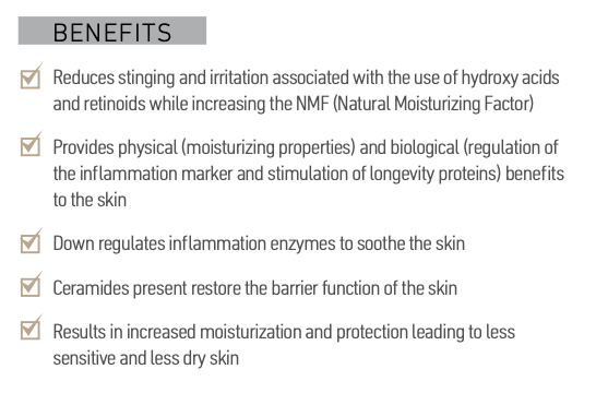 To further support recovery, four essential ceramides reinforce the skin’s barrier, helping maintain its natural structure and protect against moisture loss. With improved barrier integrity, the skin’s natural moisturizing factors increase, enhancing hydration while strengthening its defenses.